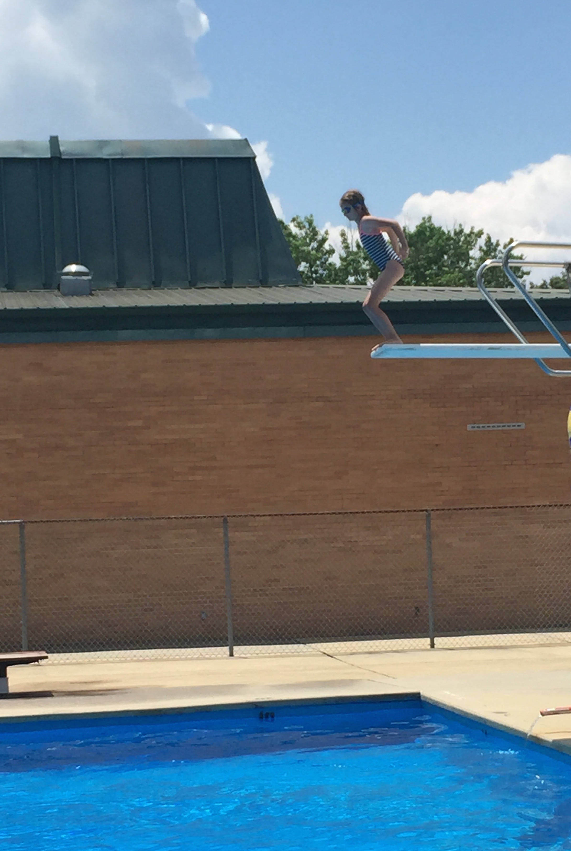Lou looked at me as she stood on the very edge of the board, that seemed a mile above the water, and I plastered a smile on my face. She didn’t know I was thinking. “Are you sure you can to do that?” She waved and jumped. She surfaced before I had time to take a deep breath. My smile was genuine.
