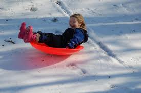 One daddy stood at the bottom of the hill beside a big tree, a possible hazard. The children veered away from it or did just what their parents told them. “If you’re about to hit a tree or out of control, roll off your sled.” Two mommas sat with crossed legs on matching disc sleds at the top of the hill. “We’re next,” one said. “We’re going down together. Holding hands.” And they did. All the way to the bottom. Neither let go of the other’s hand and neither rolled off her sled as they headed straight toward the tree. One momma crashed into the side of the tree. She looked up at her husband, who had caught every child who had careened within a few feet of the tree. He threw up his hands and then helped her up. She was okay. I heard one of the older kids ask another, “Why didn’t she just roll off?”